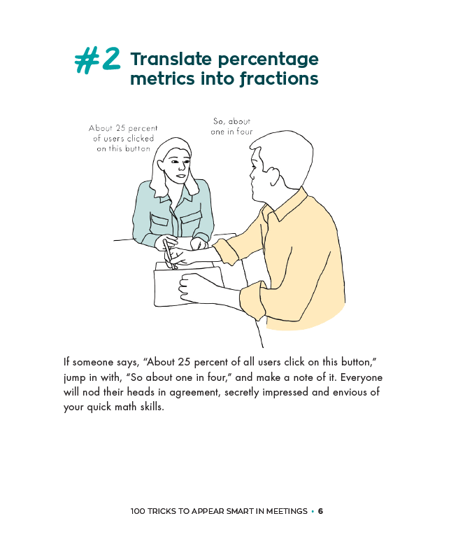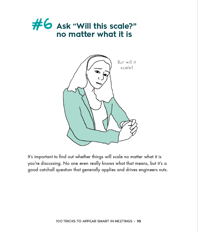 I just wanted to say that this book changed my life. I've used all 100 tricks and I am now the CTO of a well funded startup. Without this book I'd be cutting out the business cards of other CTOs at FedEx still. Thank you Sarah Cooper!