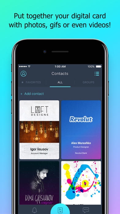 "100AM is the platform for Digital Business Cards and networking. The app connects professionals through digital business cards that are customizable and always up-to-date.