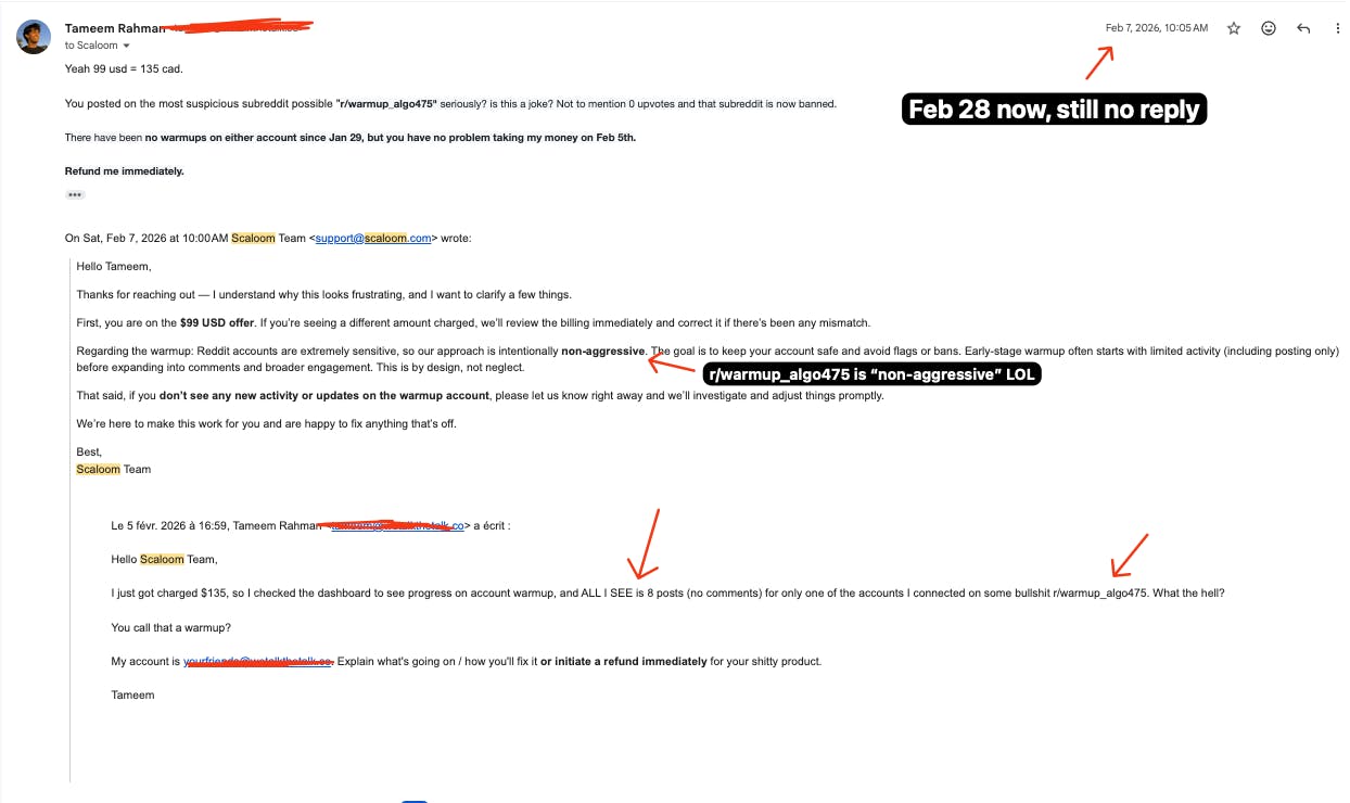 After posting three threads on "r/warmup_algo475" they ran no more warmup whatsoever but had no problem charging me a $99 subscription anyway.