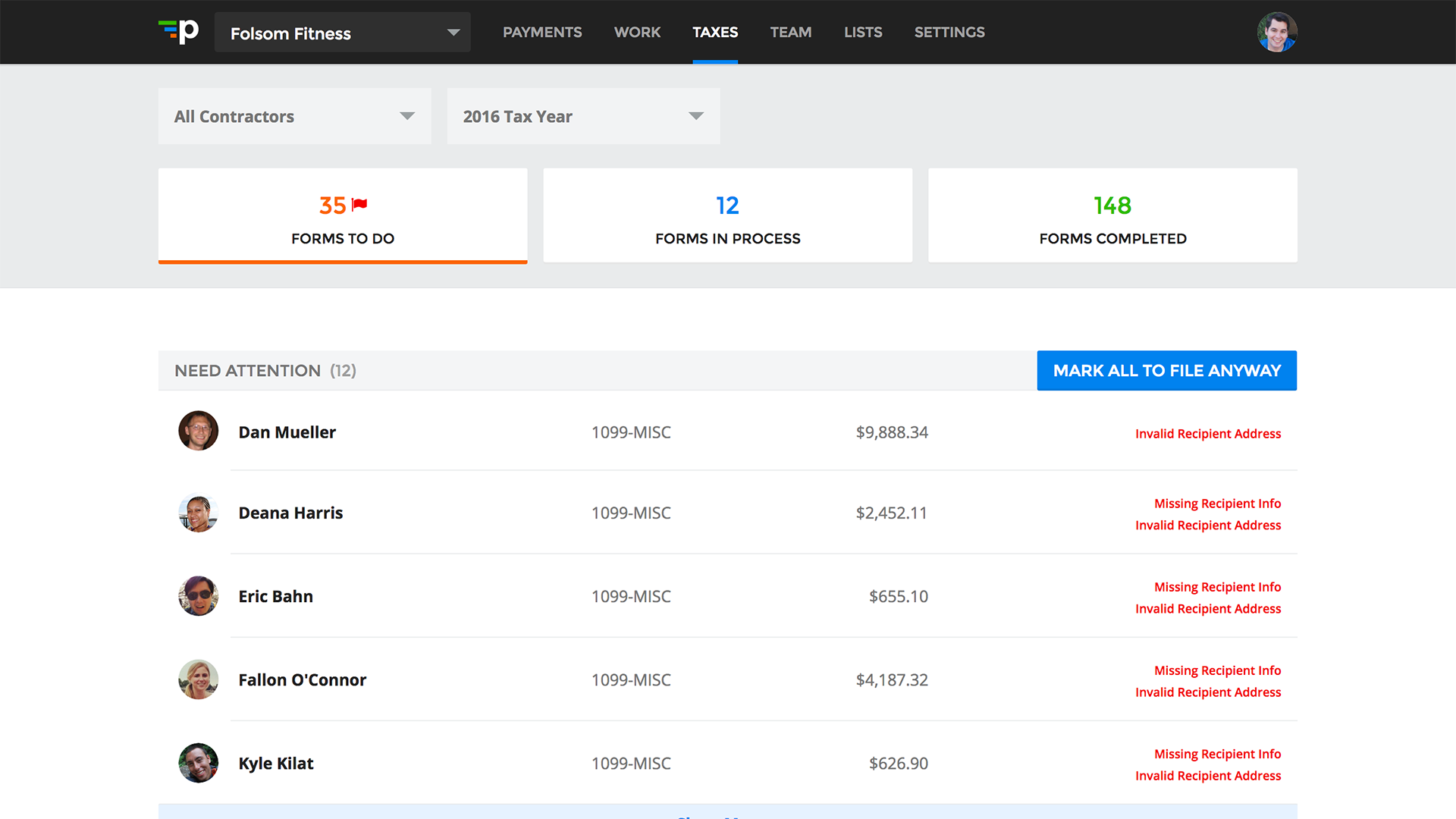Automatically generate tax forms for contractors