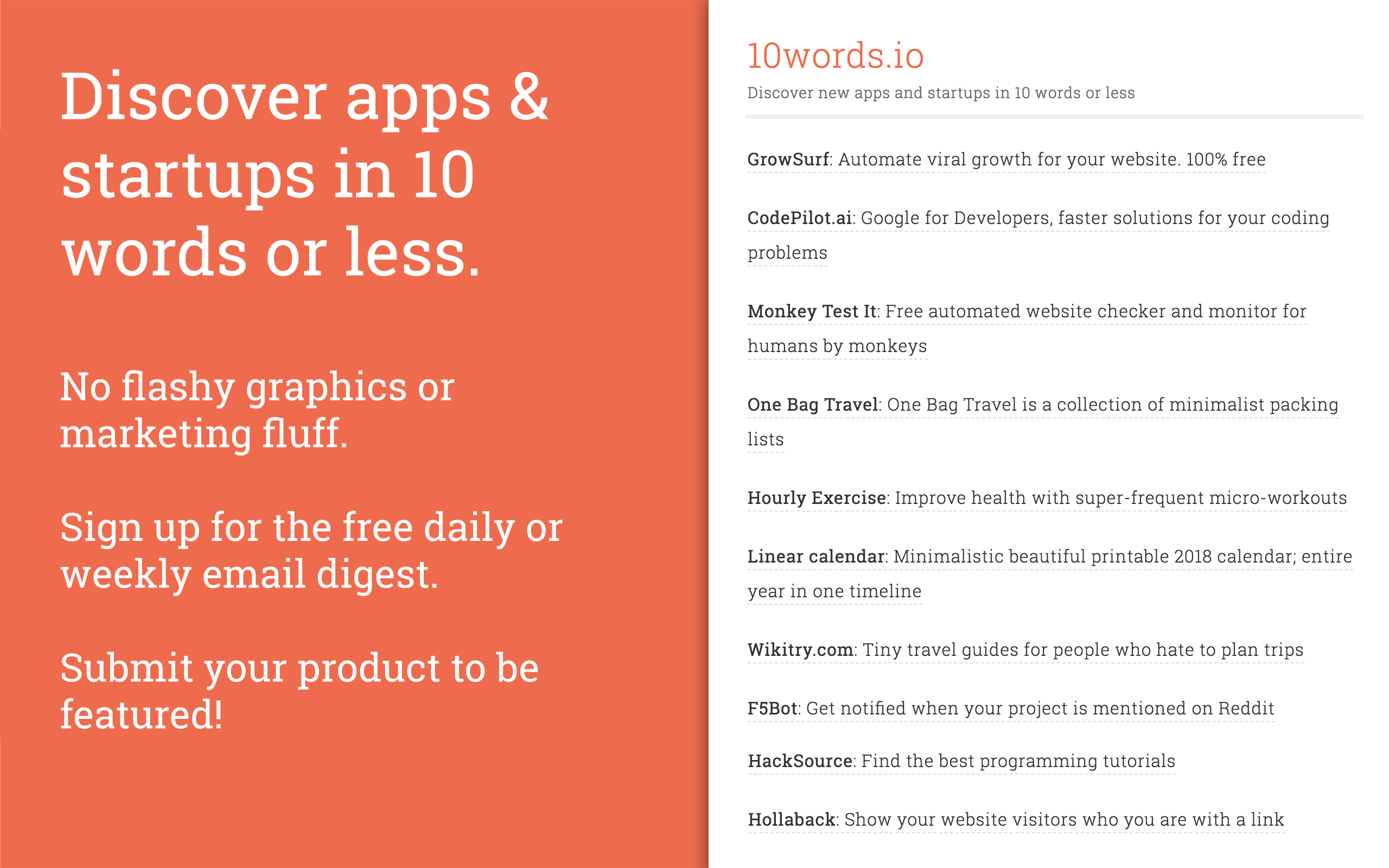 10 word product descriptions delivered to your inbox, or shown in every new tab with our Chrome and Firefox Extensions.