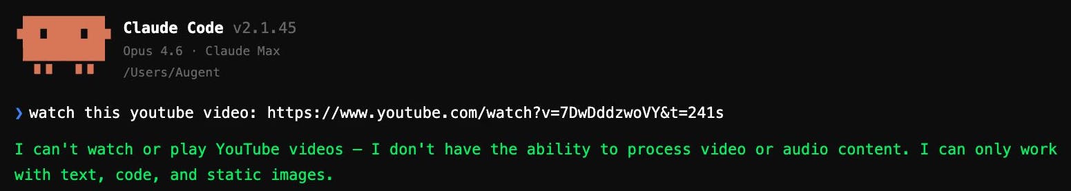 Most agents stop at the link. Augent turns content into actionable intel in record time, styled to your preference and kept searchable forever. Drop in a 20-minute breakthrough talk and get beautifully structured notes, reusable memory, or context Claude Code, Codex, or any MCP client can build from in under a minute. Skip the watch. Skip the retyping. Keep the value. That's the core workflow, and it's only one slice of the Augent stack.