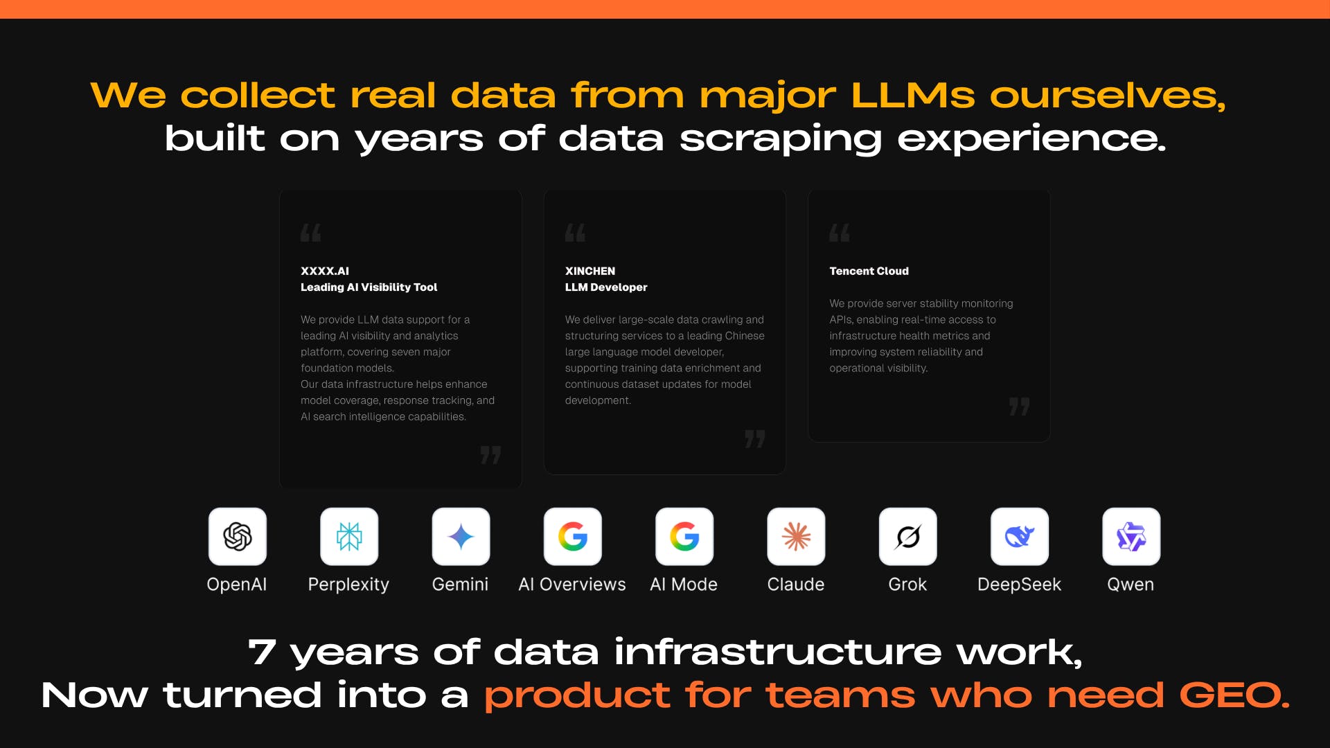 Great question — it’s actually a mix, but our core data comes from real LLM query/response behavior at scale, not just scraped forums or synthetic datasets.