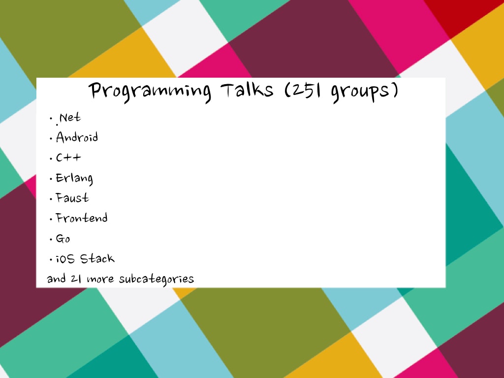 ✔️ top-25 Slack groups account for almost 500,000 members with half of them related to programming;
