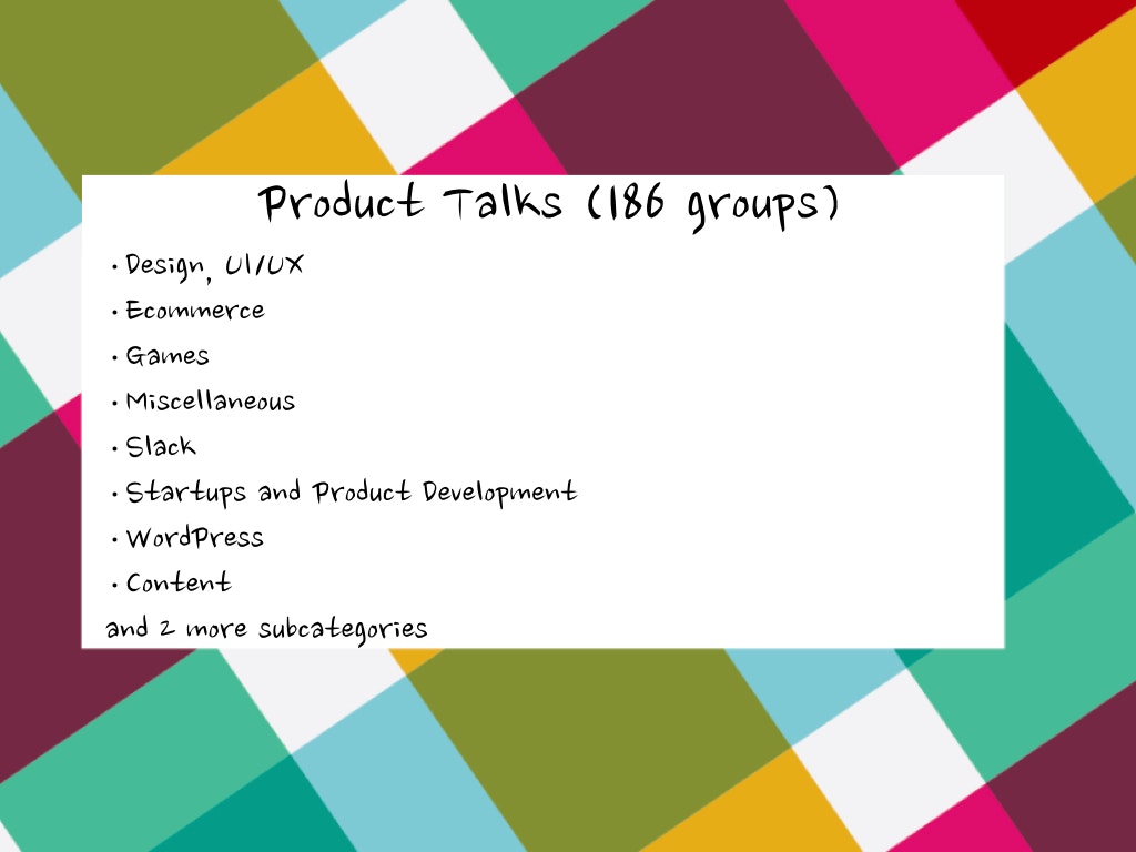 In 2017, we set a goal to find 1000 groups. We did it successfully and launched the list on Product Hunt.