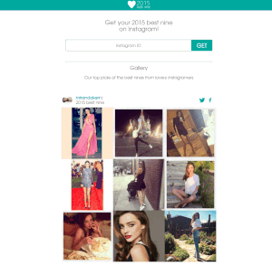 Thanks @lylemckeany for hunting it! I have been researching the bast way to express people's inner side. And we found that "Instagram pictures" is exactly the one! I considered some algorithms to pick nine for that purpose and finally decided to go with "most liked picture" algorithm. This will help you to look back 2015. Hope you all enjoy it!
