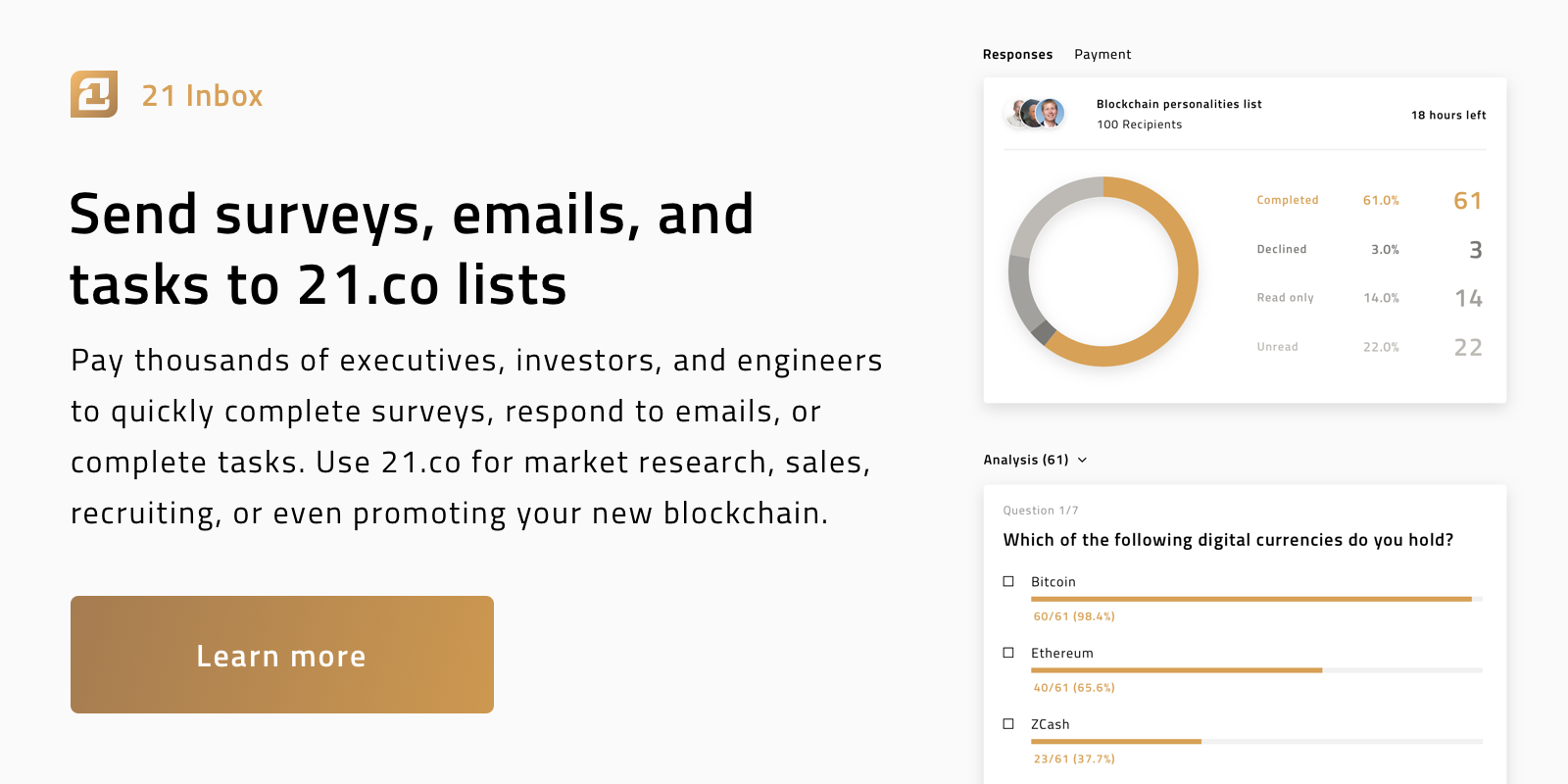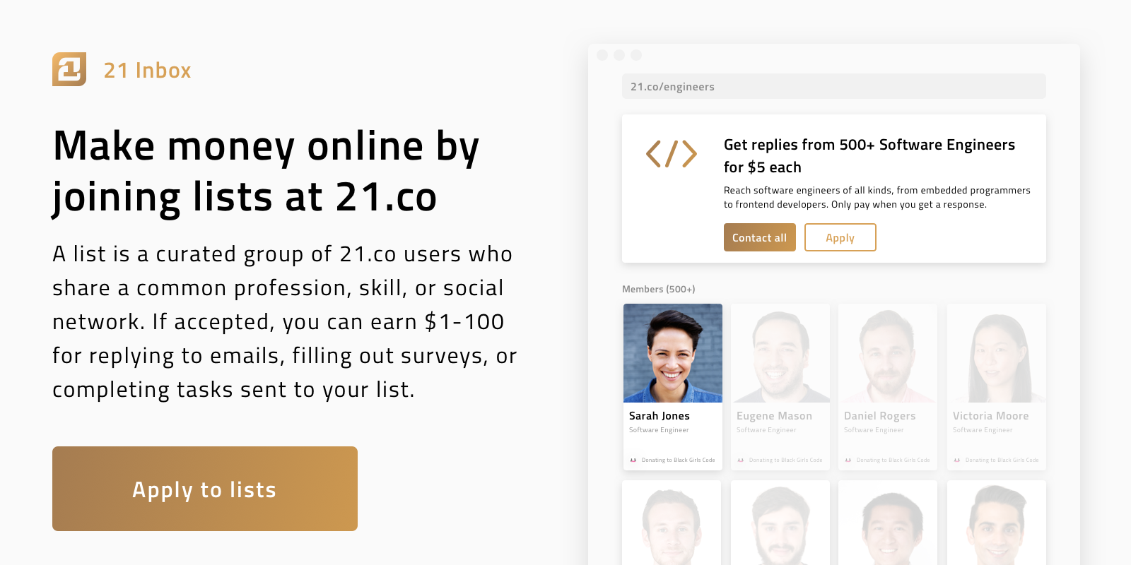 Hi everyone! The first version of 21.co allowed individuals to replace their public emails with an inbox where people could pay to reach them. We released it in February and it proved a hit with many of you here: https://www.producthunt.com/post...
