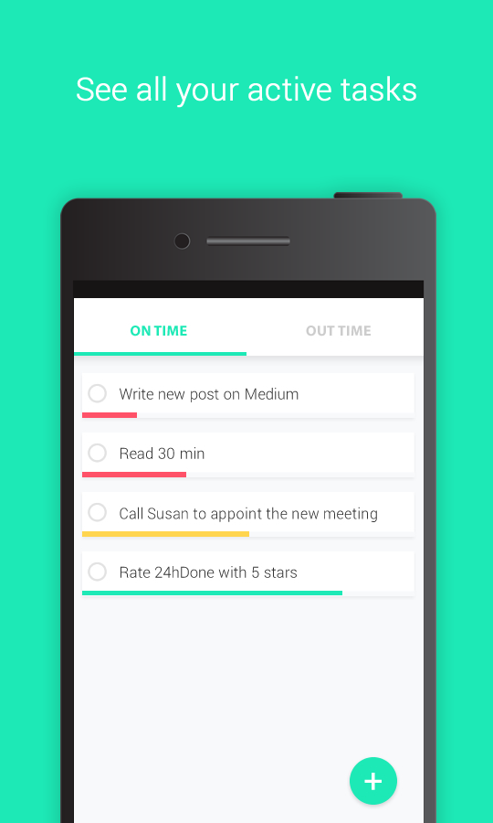 When you add a new task, you will have 24 hours to finish it. You can see all your active tasks in the "ON TIME" tab. Also, ea… See more