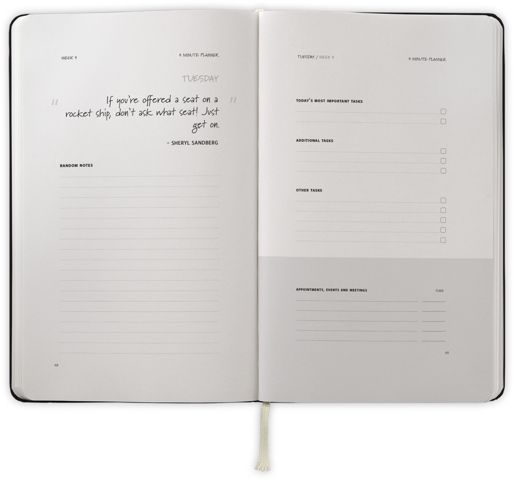 The 4 Minute Planner is the easiest way to add more structure your life, improve your productivity and get more important work done, without attempting to force your life into a structure that may not work for you.