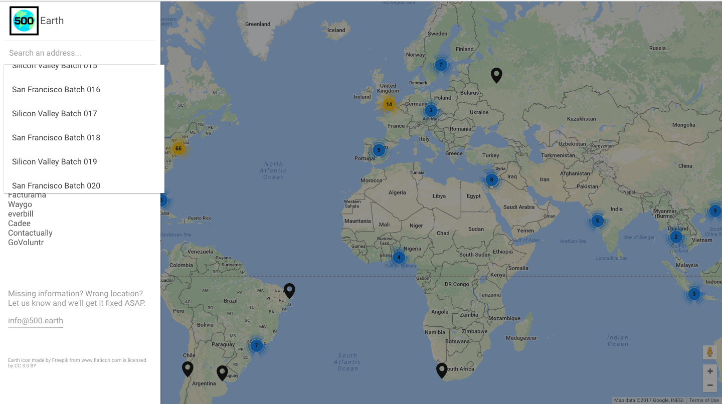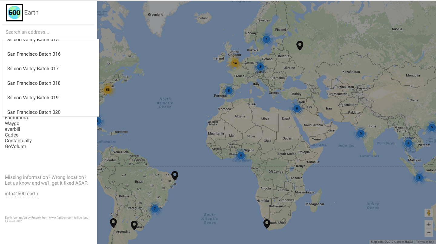 I'm surprised there aren't more companies outside the U.S. included in the map. 500's doing a ton of international outreach and investments.