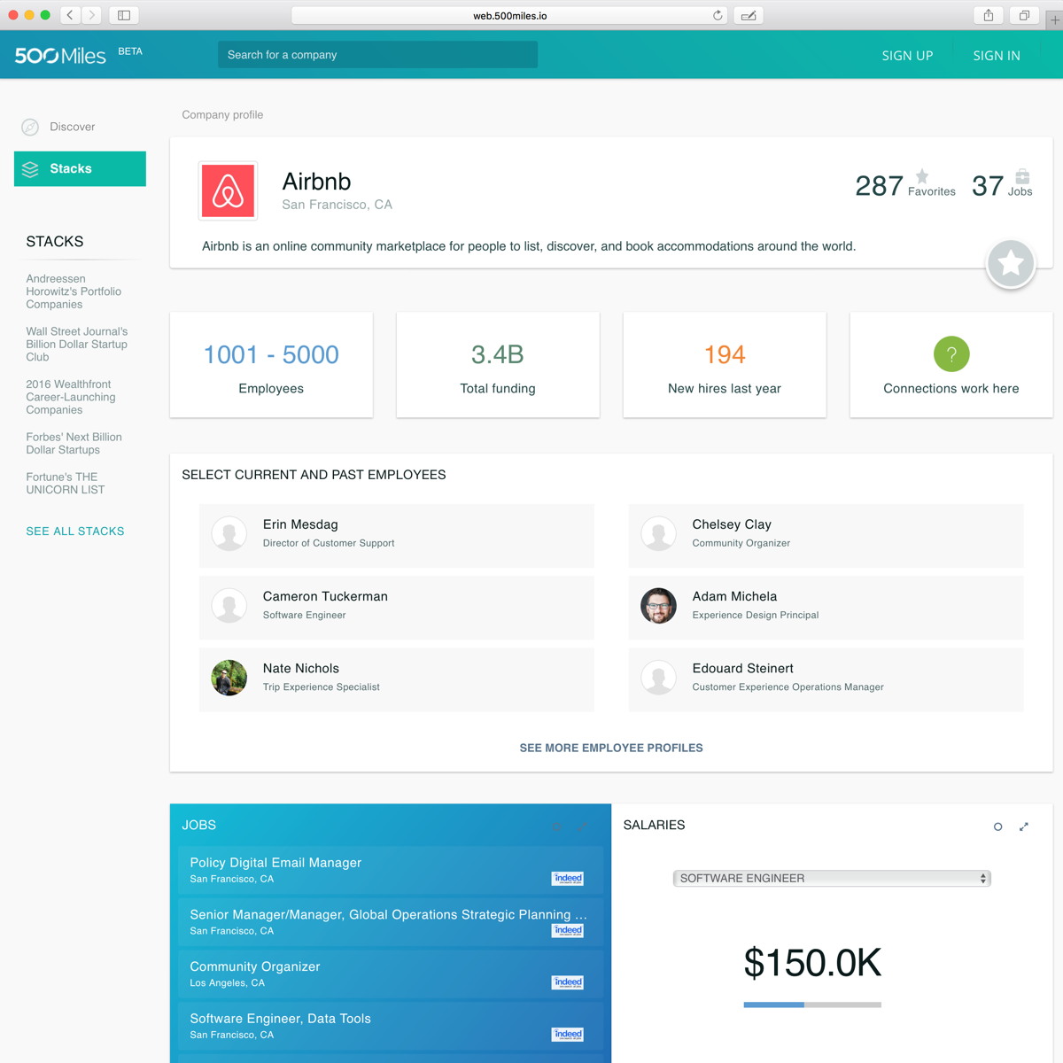 This web version of 500 miles is really neat. Find out a ton of information about tech companies to help you choose one that you think is a good fit for you if you're looking for a job. If you're not, you'll still find this to be a valuable resource to do research on companies you are interested in digging into. I use this weekly and I'm never looking for a … See more