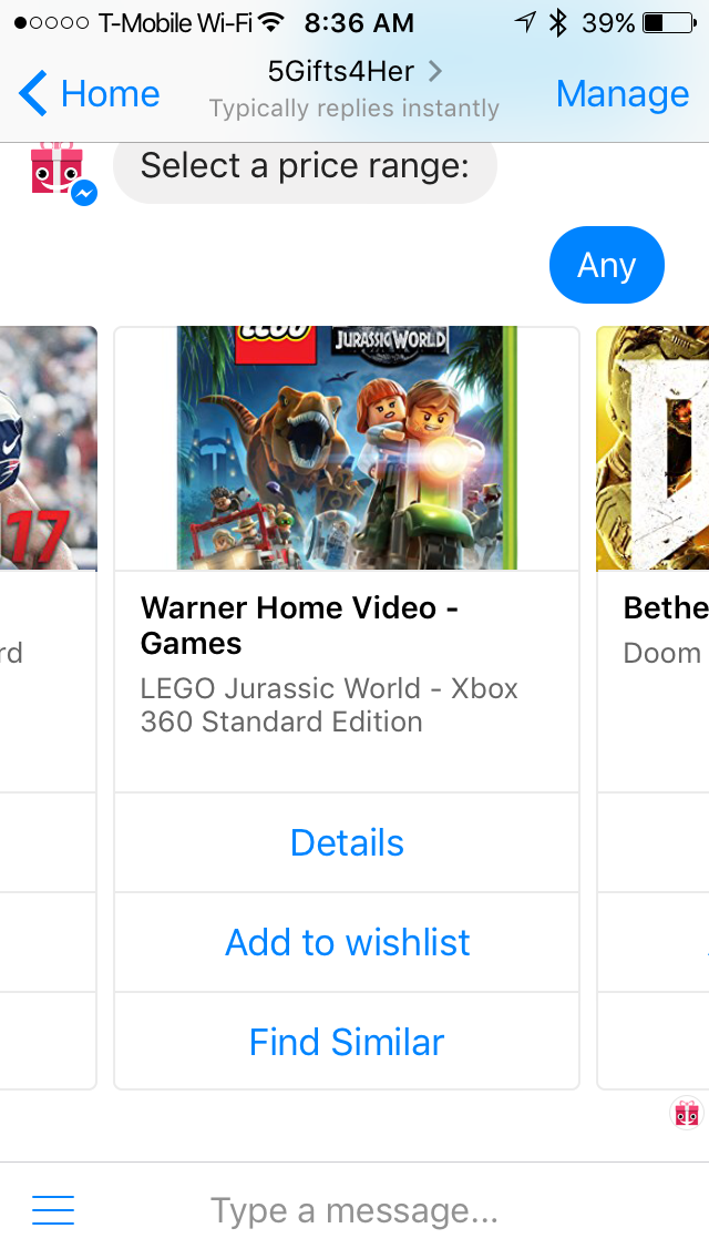 New features: Ask the bot for a gift recommendation based on a given profile, or keyword search the entire Amazon store via the 'Find' feature. Add favorite products to multiple wishlists, which you can seamlessly share with others on Messenger using unique Wish Codes. Perfect for collaborative gift selection, personal wishlists, and… See more