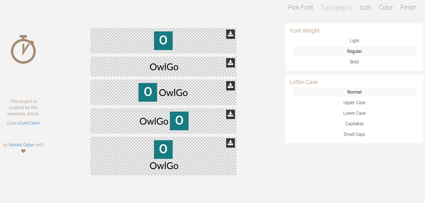 I made this project to solve personal problem of myself to create a quick logo for my development experiments, it help crete quick but yet non professional logo that just fill the gap, I wrote a story about it this experience here https://blog.aigdonia.me/doit-1-...