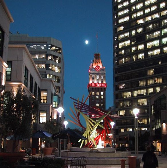 "The skyline of beautiful downtown Oakland, California, is defined by various towers by day, but at night there is one that shines far more brightly than the rest: the neon-illuminated Tribune Tower.