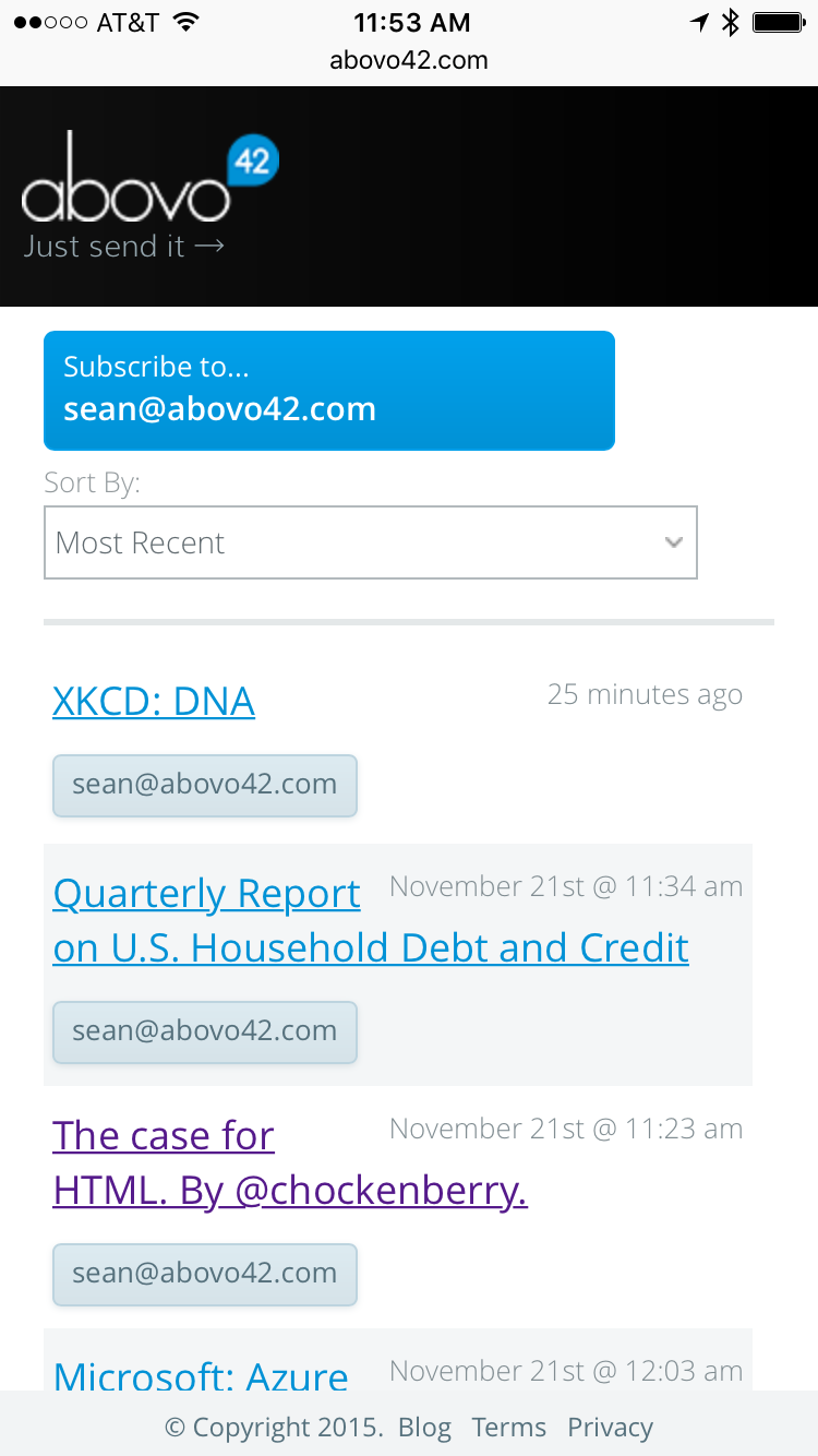 Abovo42 is a simple lightweight publishing tool that works via email - you can publish by sending any email to post@abovo42.com and you will receive a link to your post by email (here is my example: http://www.abovo42.com/ericfried...)