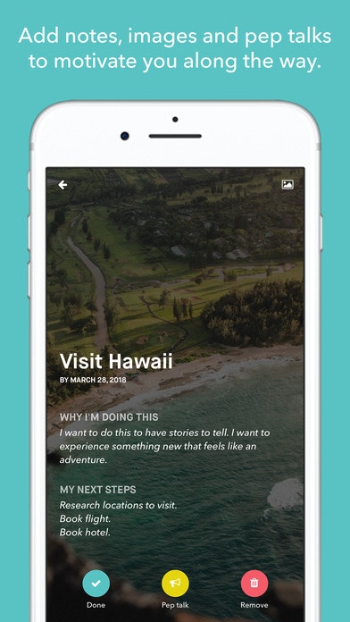 Accomplish is for all the "want to-do's" in your life. It let's you build your unique bucket list with everything from personal goals to places to visit. You can add your "why's", inspiring images and add motivational pep talks to k… See more