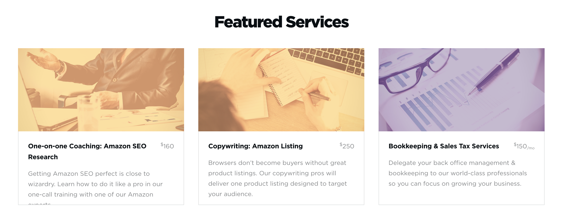 The rest of our services like photography, copywriting, accounting are also in hands of professionals with a success record working with e-commerce and Amazon-preneurs.