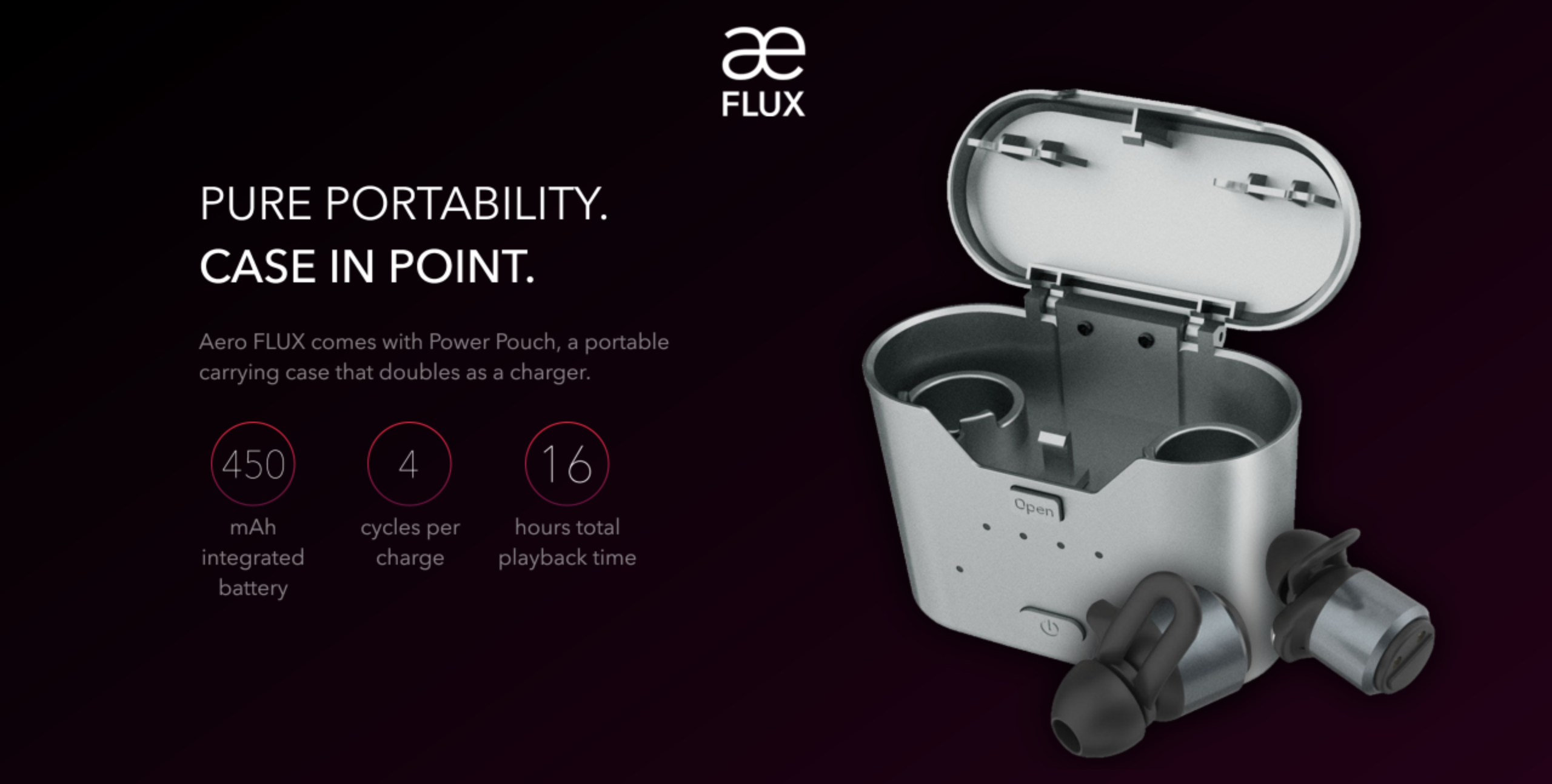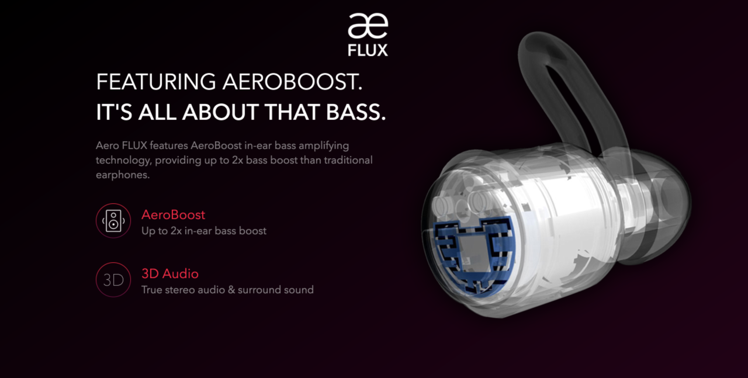 Aero FLUX wireless earbuds optimized for any device.