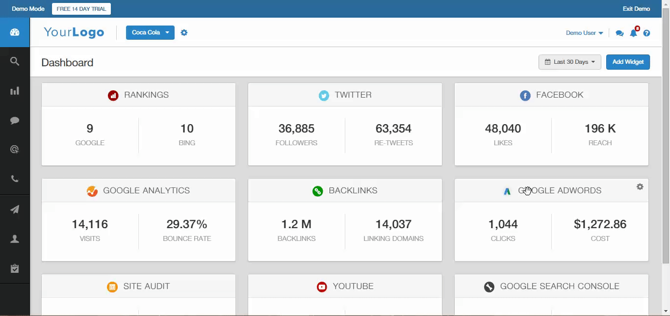 Agency Analytics is the all-in-one marketing platform for agencies. We integrate SEO (Rank Tracking, Backlink Monitor, Site Audit), Social Media, PPC, Web Analytics on one simple, drag and drop dashboard. Building automated reports is a breeze and every account comes with the ability to white label a mobile app.