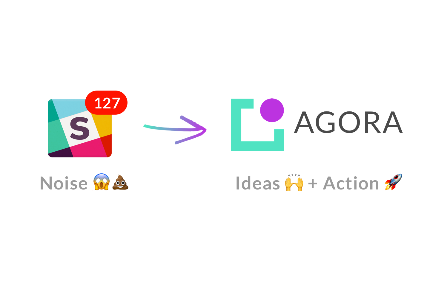I'm so so excited to see Agora featured on Product Hunt! Agora is an app with a vision to help take your team's ideas into action. When you're inundated with information, but you don't want to miss out, Agora is there to let you know exactly what you need. Overwhelmed by the amount of information in your Slack channel? Give Agora a shot. π
