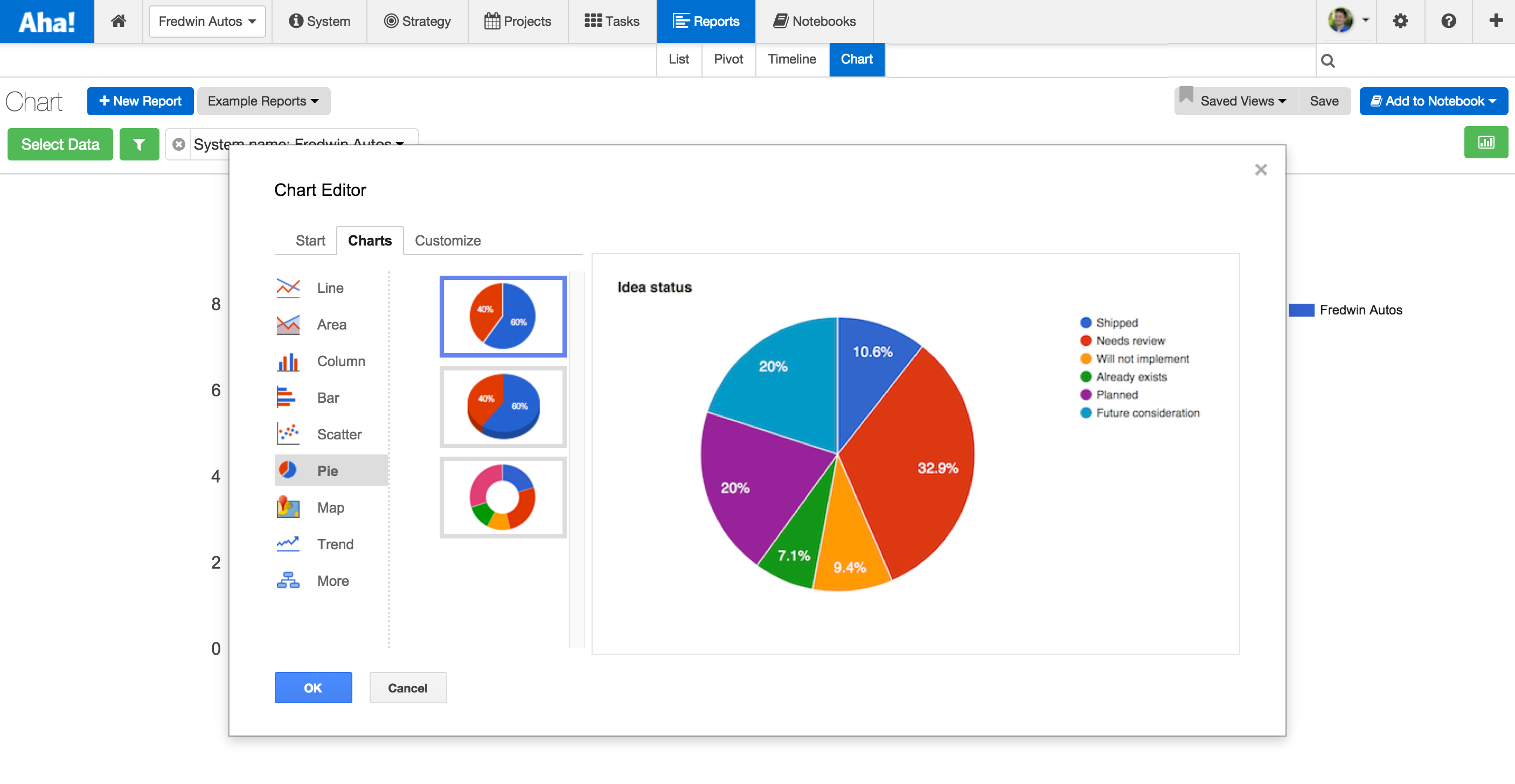 This chart tool definitely provides value breaking down everything we are doing into visual representations. It can be super helpful to find trends, whether good or bad, super easily. Great job Aha! team on your continuous commitment to refining a great app!