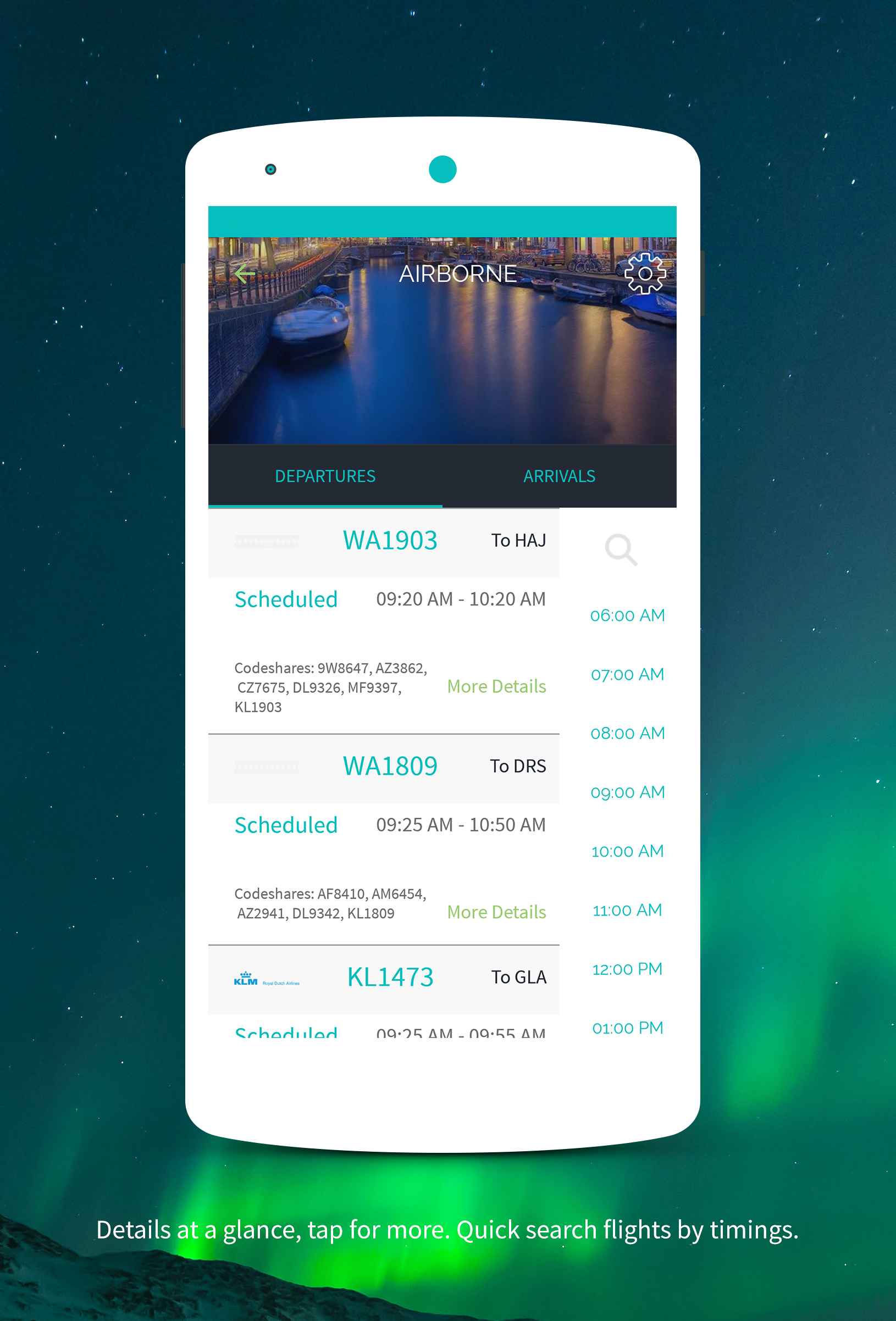 Airborne is an elegant and powerful flights flap-board right in your pocket. Airborne takes advantage to multiple flight feeds and try its best to give as accurate results as possible. Airborne is also one of the fastest flightboard app available in market.