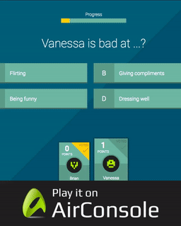 After many requests, we decided to create a multiplayer Quiz Maker on AirConsole. I hope you guys like it. :-) Let me know if you have questions. You can play with up to 100 people at the same time.