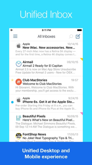 Hey guys! I'm part of the support team for Airmail. If you have any questions, etc feel free to send them my way. Have a feeling I'll be handling a lot of requests today, so will try to get to every question as quickly as possible.