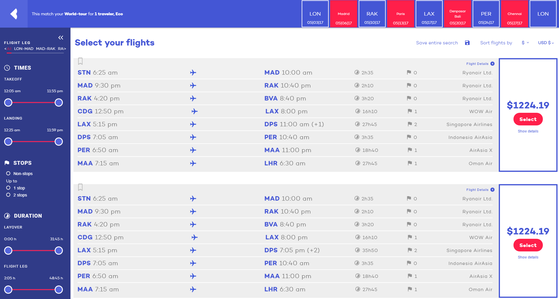 As an example of what you can do with AirWander, here is Around the World trip from London