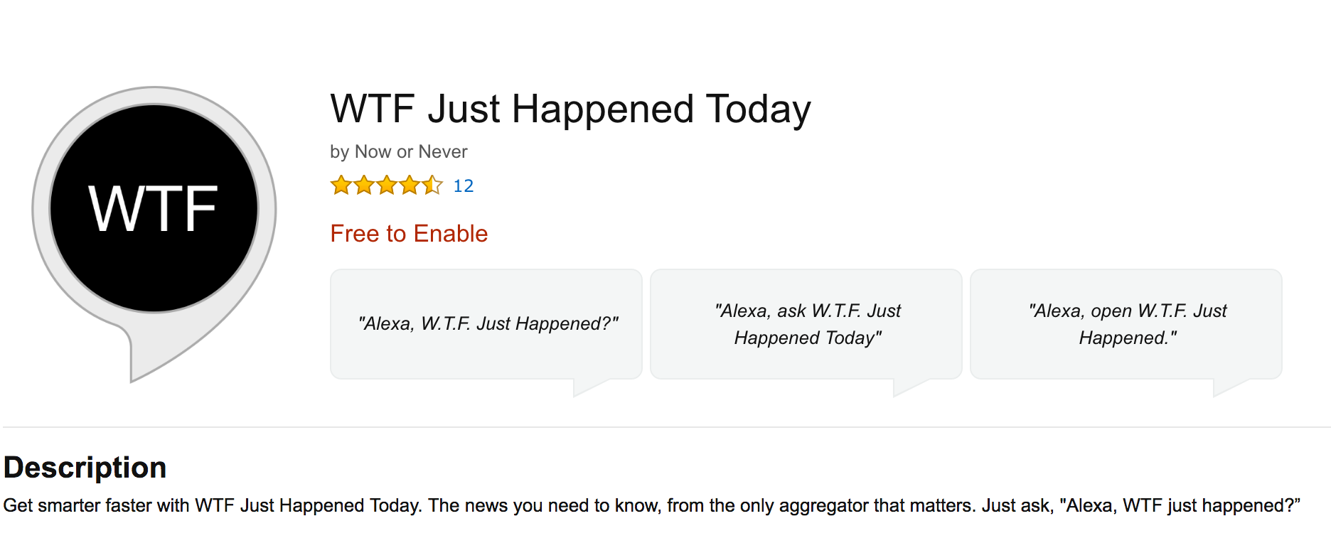 I'm super excited about this WTFJHT Alexa skill – not because it's awesome! But because it was contributed by @staringispolite, a community member that volunteered his time to make this! So rad. 👊