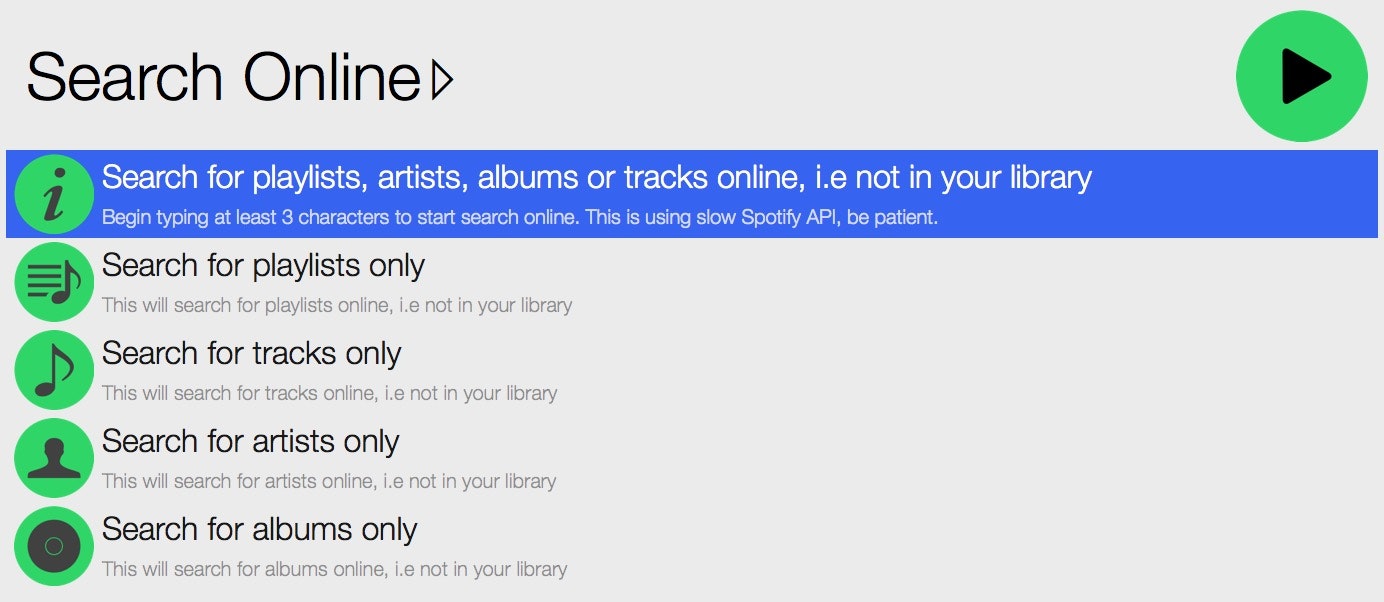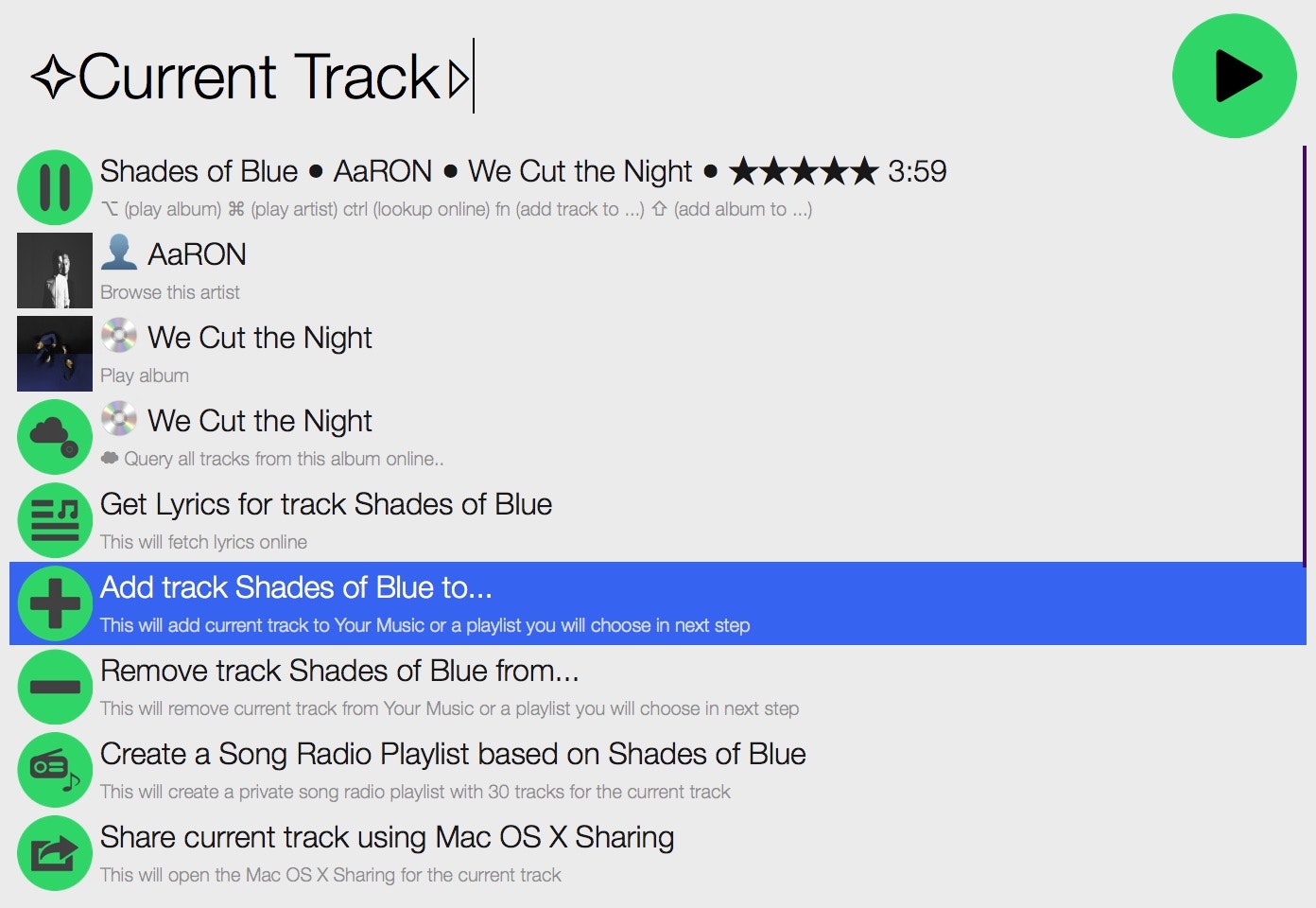 Alfred workflow to fully control your Spotify library