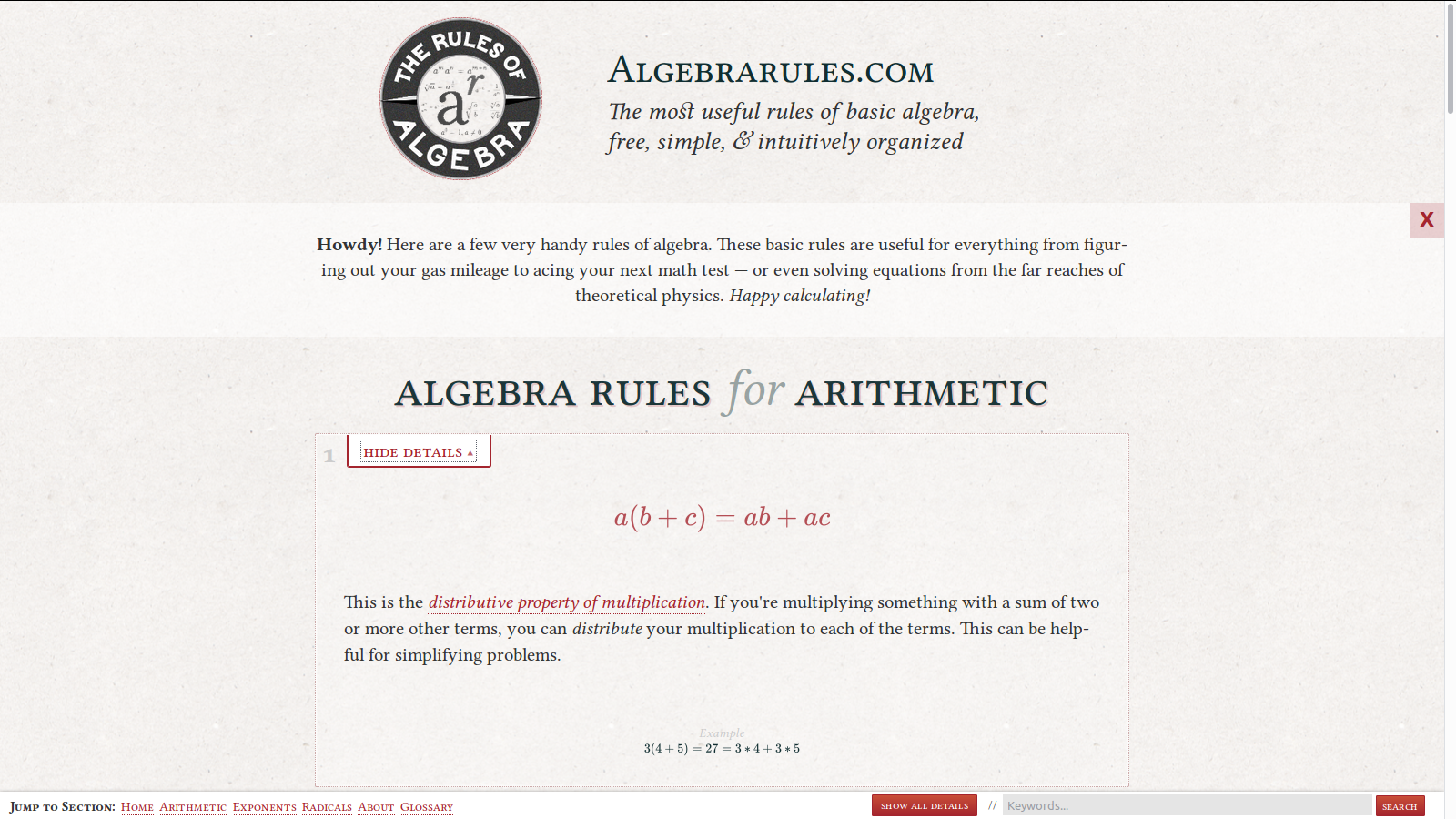 They say that you learn 80% when you teach what I know to others. @amckent and I built Algebrarules.com (I wrote the code and he took care of the math) because we wanted to dive a little deeper into algebra, and, while there are plenty of great math resources out there, we couldn’t find any convenient reference for the basic rules of algebra.… See more