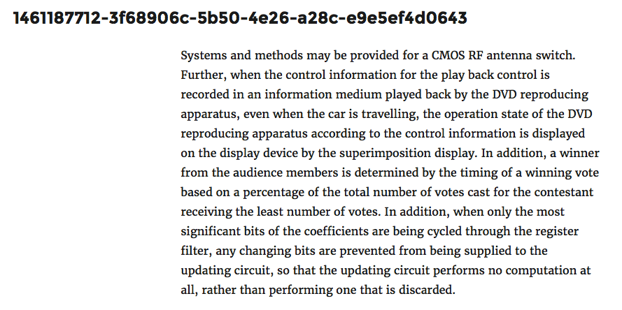 All Prior Art is a project attempting to algorithmically create and publicly publish all possible new prior art, thereby making the published concepts not patent-able. The concept is to democratize ideas, provide an impetus for change in the patent system, and to preempt patent trolls. The system works by pulling text from the entire database… See more