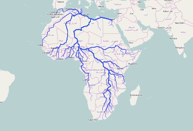 Oh I love this visualisation. This could work great if you want to 'plan' a roadtrip and want to just keep on driving and driving and driving and driving, you can already found out where you'll end up haha!