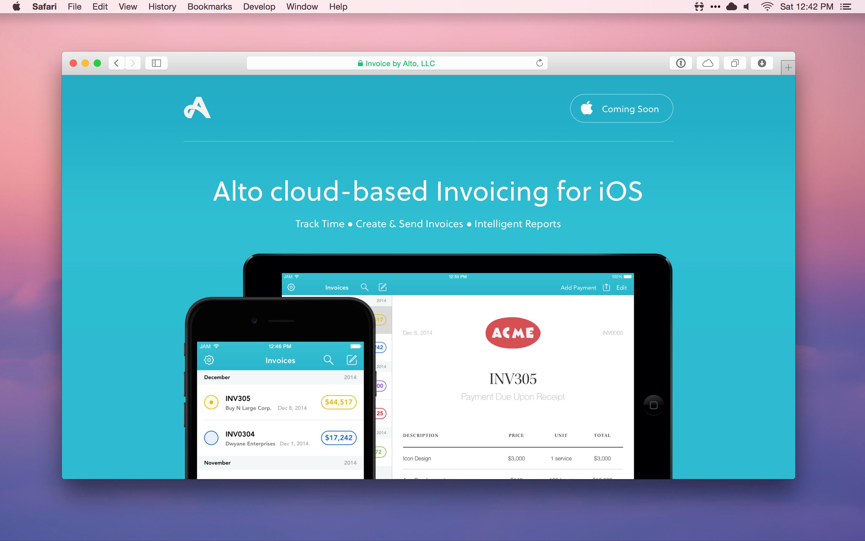 Alto is desktop class invoicing and time tracking software for iOS. It empowers small businesses and freelancers to track billable hours, send estimates and invoices and get paid.