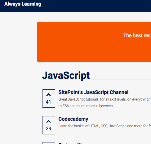 Hey PHers! I built Always Learning because I thought it would be useful if there was a place where I could find the best resources for learning programming and design.
