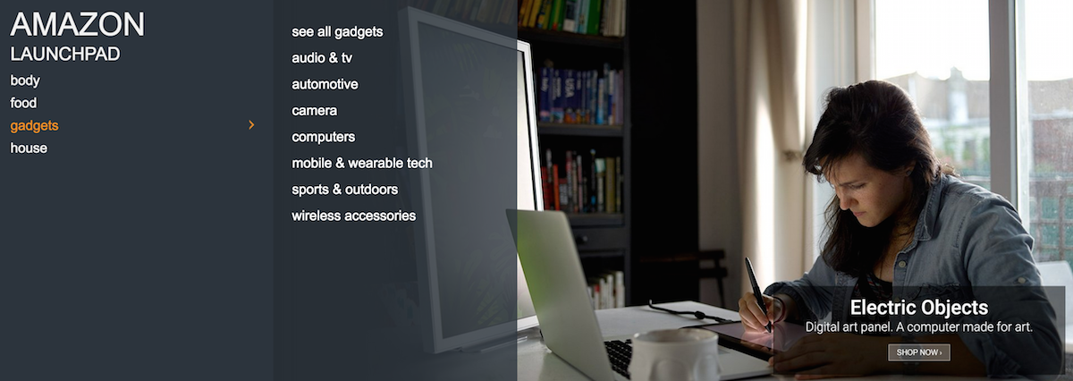 This is super interesting and I like how they've categorized products into "collections" such as connected products, health & fitness, Indiegogo-backed, etc. Amazon is in a unique position to drive traffic and complete the transaction.