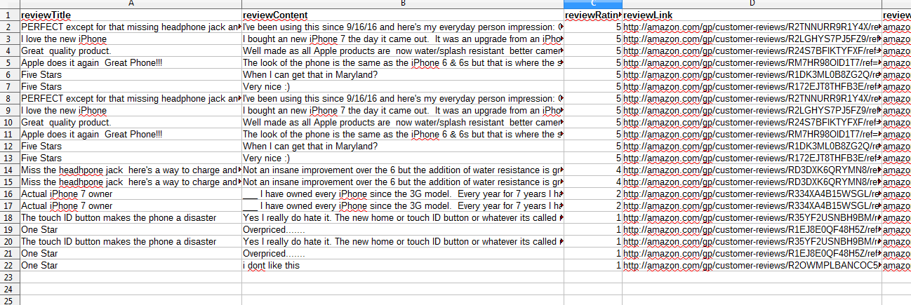 put your Amazon reviews in excel
