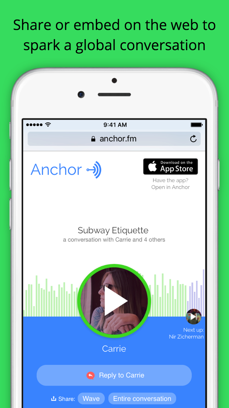Ahoy, Product Hunters! Mike from Anchor, here. You can listen to this comment: https://anchor.fm/w/98abdd