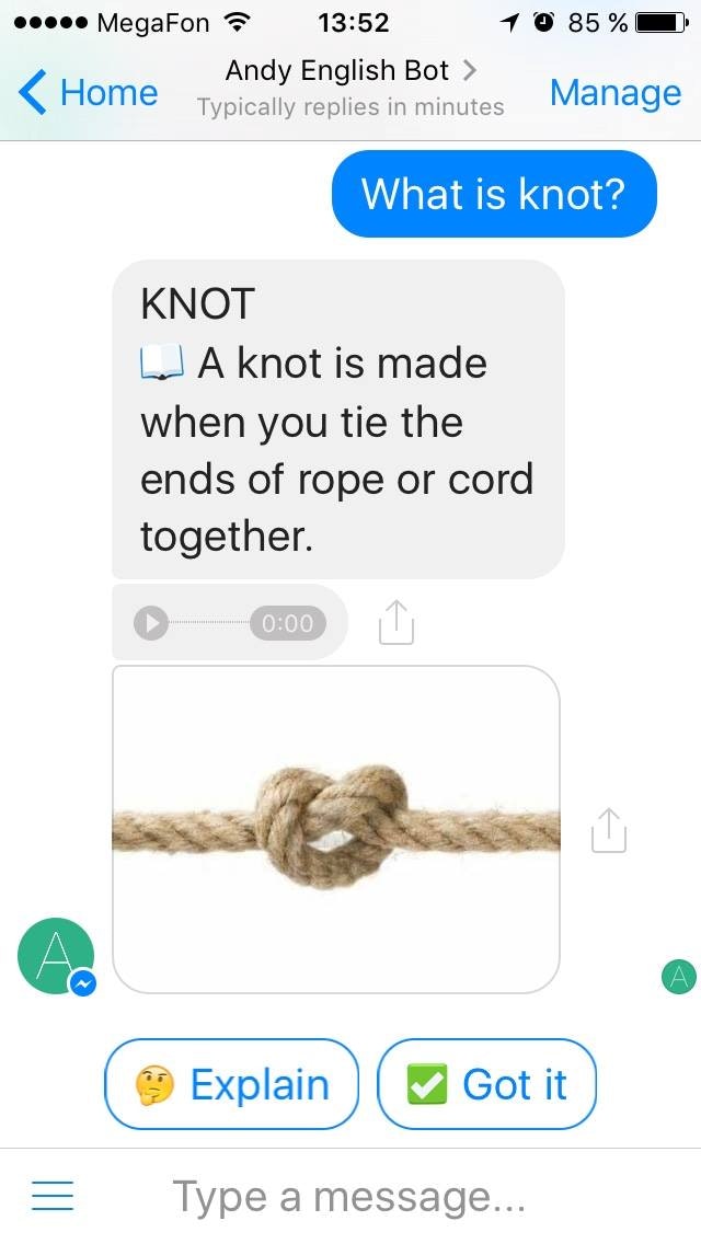 Before Duolingo got into bots, there was the Andy English Bot (launched in July). Learning a language via bots makes so much sense!