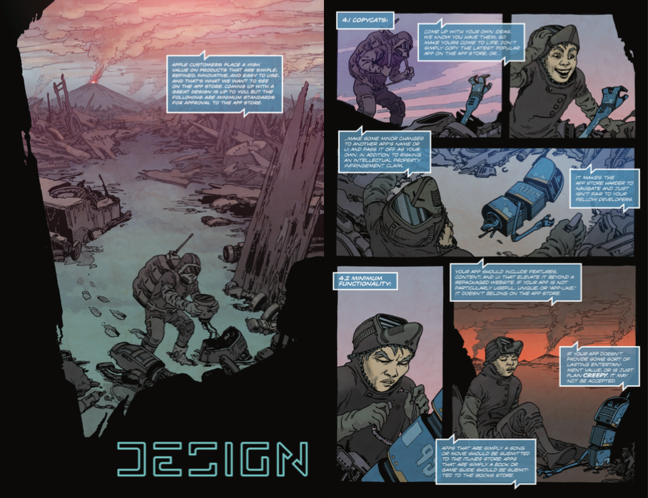 This is great. It's not original -- that honour goes to @RSikoryak and his iTunes Terms and Conditions (see http://itunestandc.tumblr.com), but it's fantastic to see more Apple T&Cs in comics form, and especially Apple themselves distributing it.
