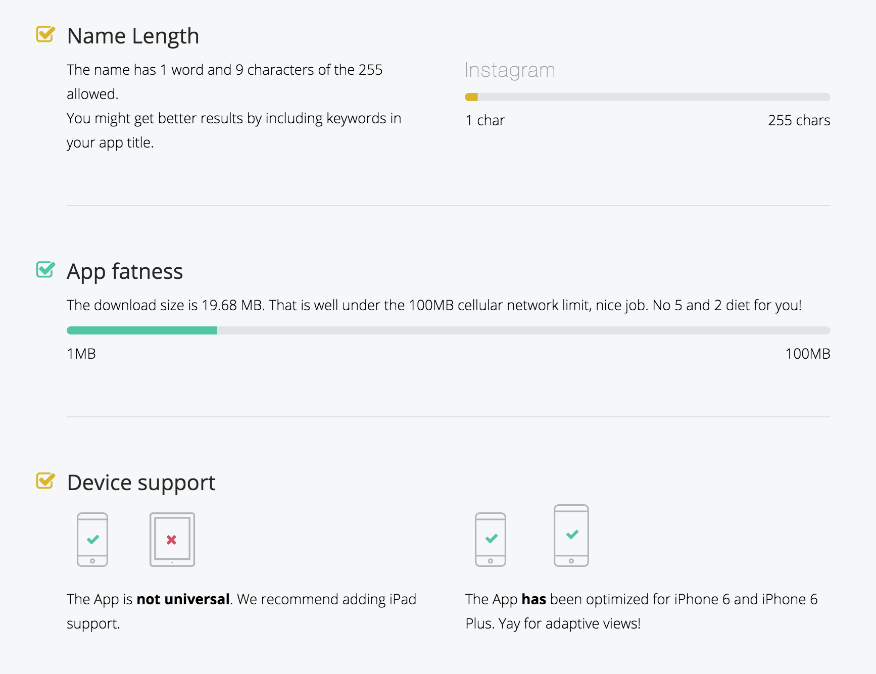 Hey everyone, we (Appbot) made the App Store Health Check to help improve pages on the App Store. Let me know what you think.