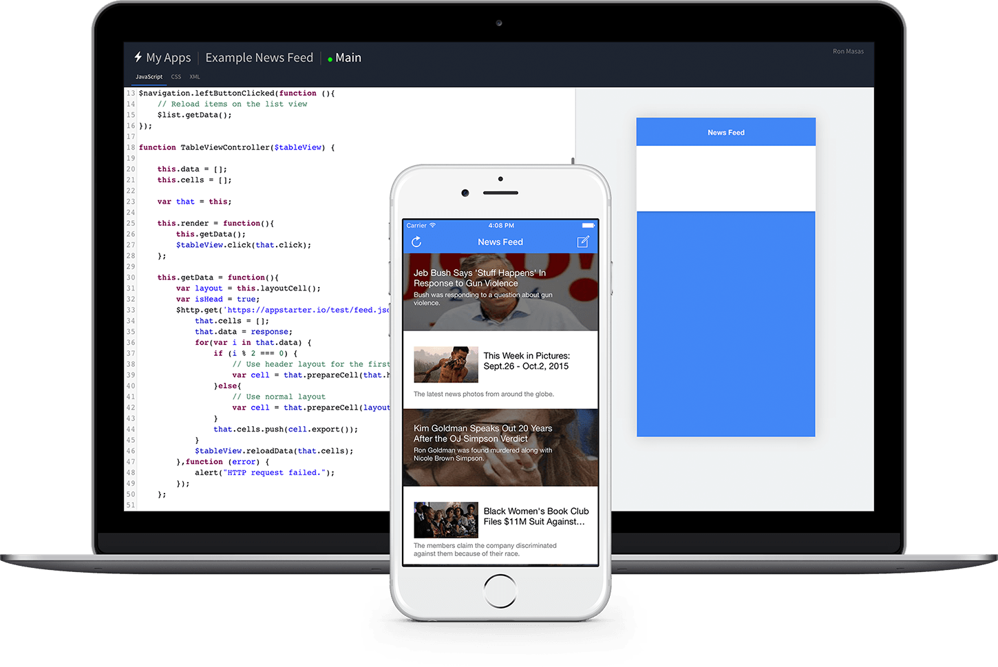 Easily create native iOS apps using common web technologies like XML,CSS and JavaScript. Your app will be 100% native and you can start developing online, for free.