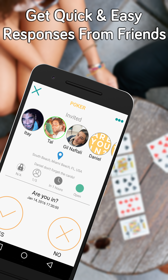 "AreYouIn": Event Planner is a fast social tool to organize your events, nights out, weddings, soccer games together with your friends.