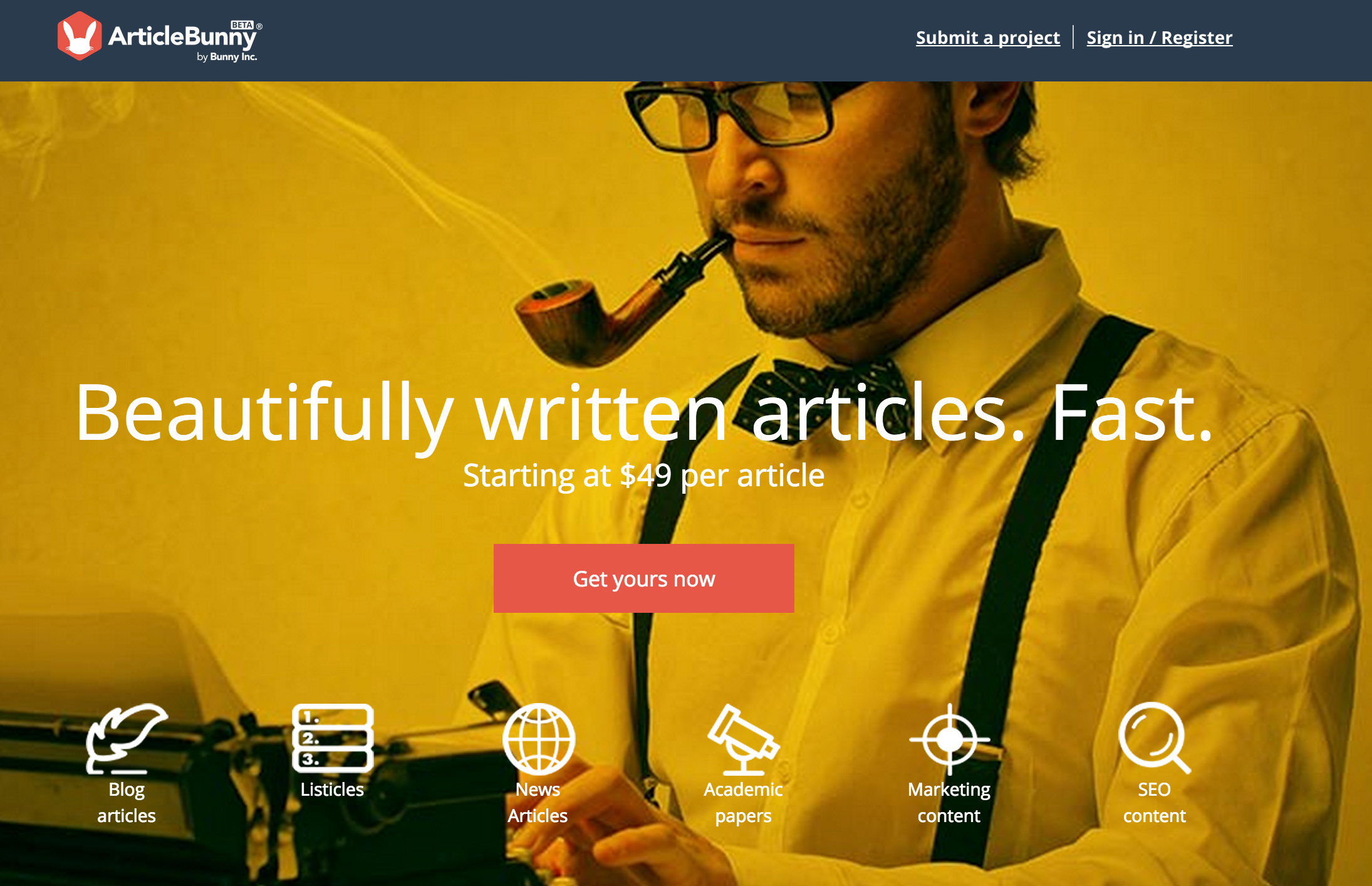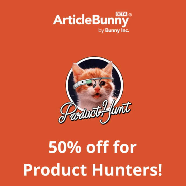 Our goal at Bunny Inc. is to help humankind reach its full potential. To accomplish our goal, we build end-to-end marketplaces for the creative world. We are very proud to launch ArticleBunny with the Product Hunt community: we aim to help companies delegate their article projects and help talented writers get booked for work. Product Hunters receive a 50% d… See more
