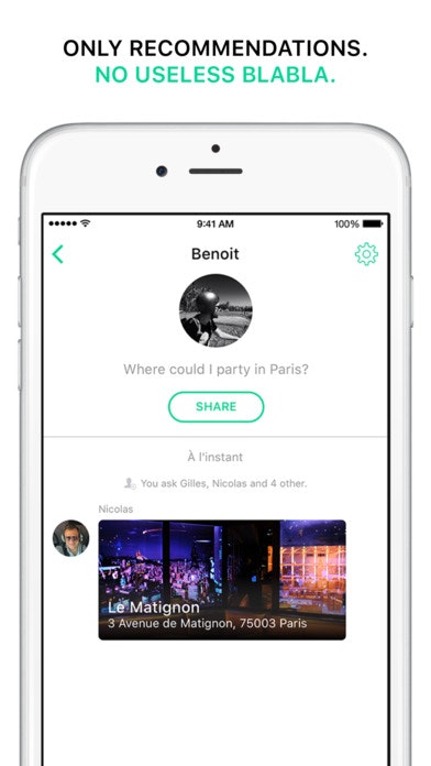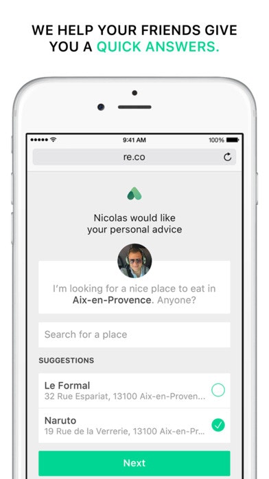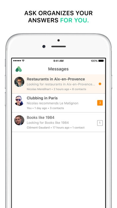 Ask allows you to get the best recommendations from your network. Thanks to our new app, ask your question in less than 10 seconds and it’s done, we take care of everything! A few seconds later, your contacts will have the opportunity to answer you directly using the app or via a simple link. Once you’ve tried it you’ll never go back!