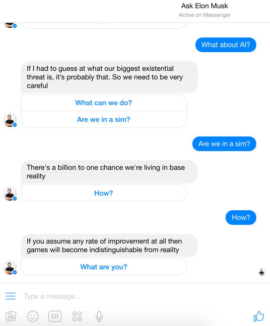 I genuinely think that there is a big opportunity for bots and users.... people speaking to a bot of a celebrity.