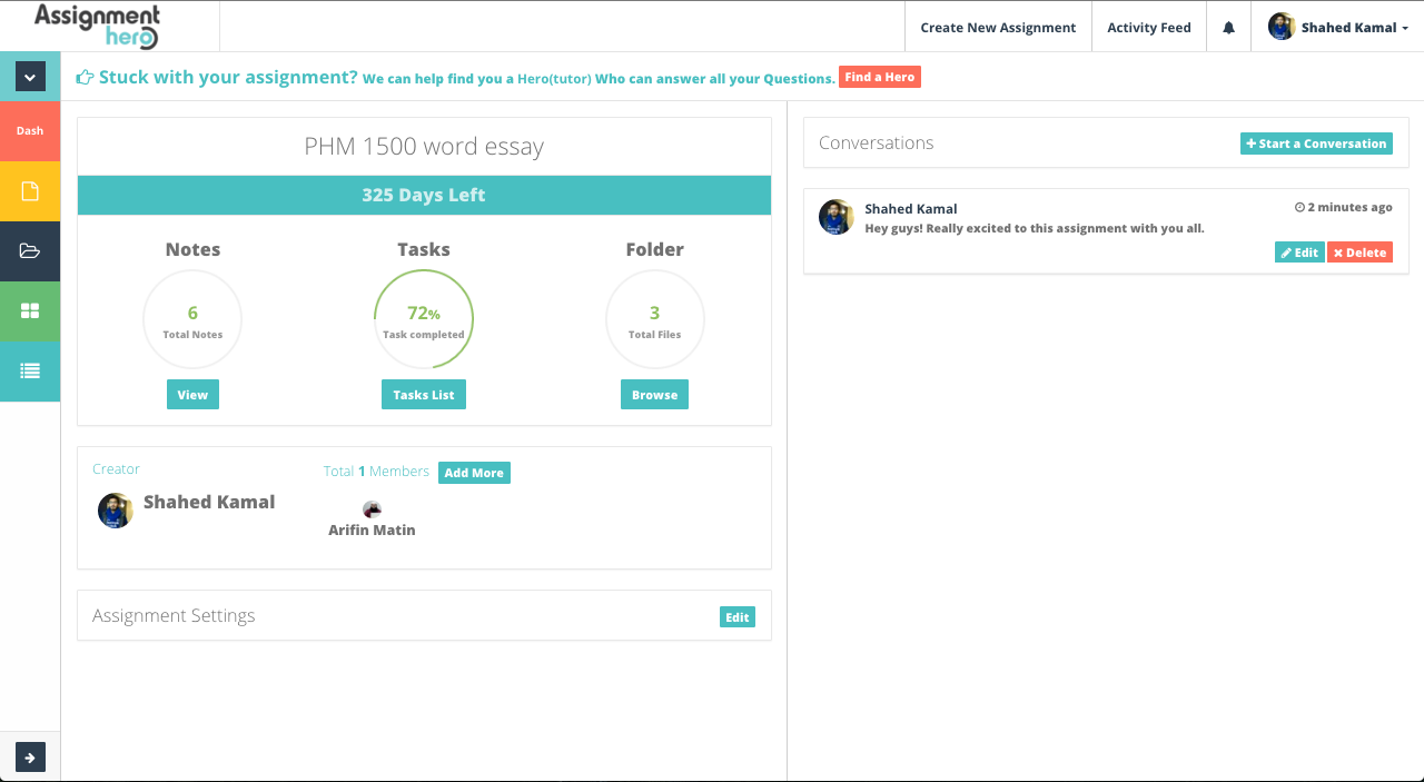 So after an internship at a software company and falling in love with awesome workplace collaboration tools, AssignmentHero was born. And we have just started on a journey to build something amazing for students, that uplifts their experience of working on assignments.