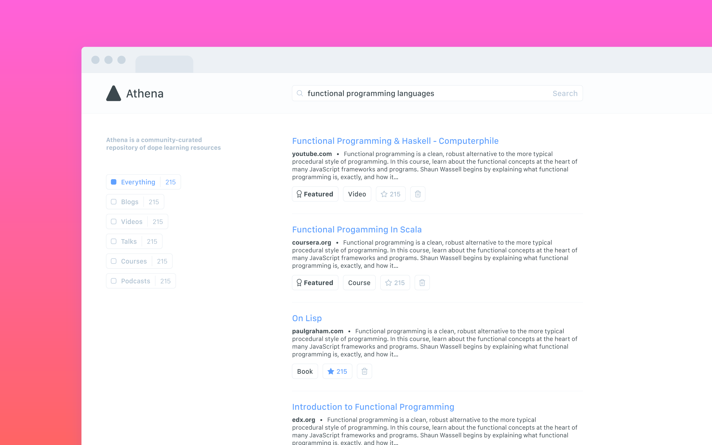 Athena is a community-curated repository of 🔥 learning resources to help you learn anything.
