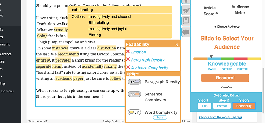 Smart editing tool that adapts your writing to your audience